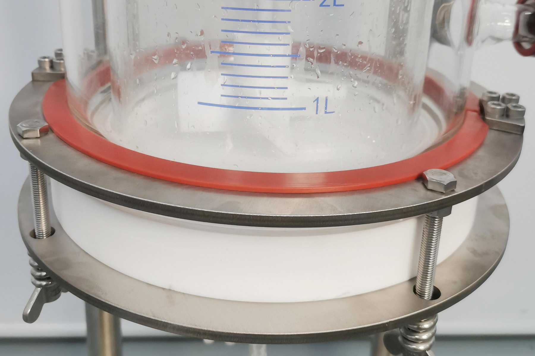 夹套包到底对干5L及以下容量的釜体来说因为本身釜内物料较少,所以对于夹套控温,普通法兰边的底部的一部分玻璃是没有夹套的,所以控温不到的地方物料温度不同,可能导致最终实验结果不理想或者得到的数据不准确,对于10L 及以上的等体来说是加大了过滤直径,过滤速度快,实验效率大大提高。