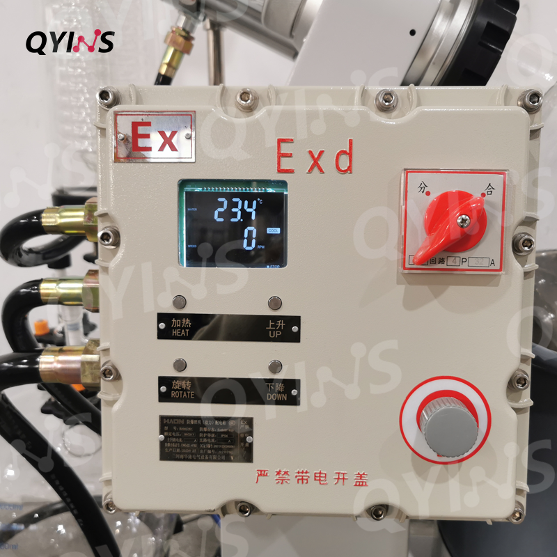 防爆旋转蒸发仪 EX QYRE-20X(容量可定制1~100L)采用大容量,大口径旋转蒸发瓶,蒸发面积大,在减压下置于水浴中,边旋转边加热,使溶液扩散蒸发 广泛应用于浓缩、干燥、提取等 化工、医药领域