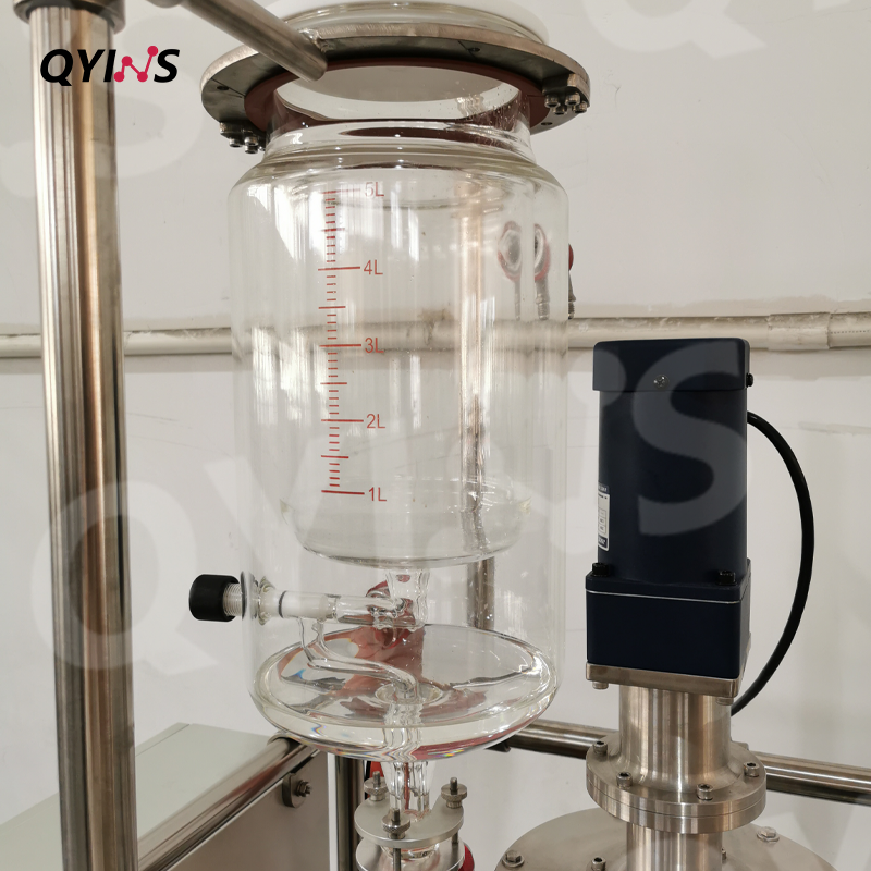 2.高透明度和高同心度,内置蛇形玻璃盘管冷凝器配套316不锈钢搅拌框,结合四氟刮条
