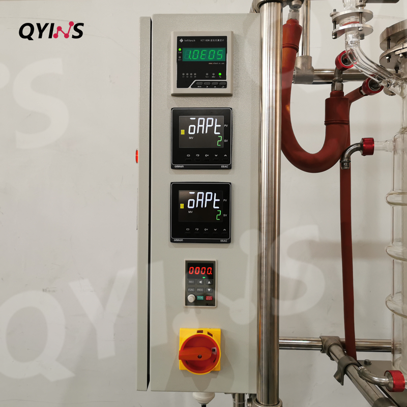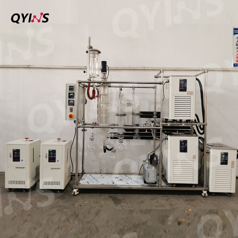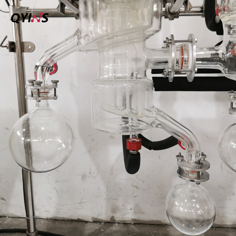 玻璃分子蒸馏 QYMD-60D(有效蒸发面积0.06㎡,外置两根冷凝器,配套两台低温泵) 应用领域 : 日用化工及化妆品 医药 添加剂 塑料 农药及表面活性剂-矿物油 工业大麻(CBD) 加工物料 :合成及天然维生素(维生素A、 维生素E、 B胡萝卜南)提取纯化CBD。