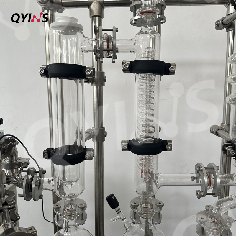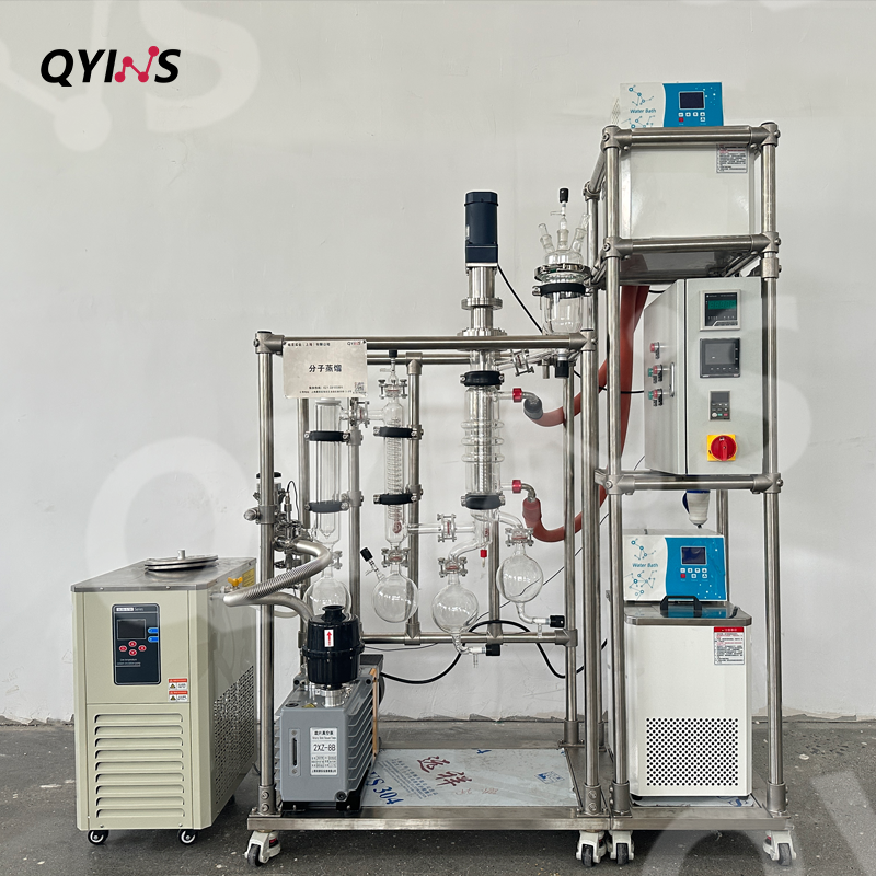 分子蒸馏设备能广泛的应用于原料药,医药中间体等,能在高真空度,温度较低的条件下,快速高效的分离出有效成分,尤其适用于热敏性强等医药中间体产品的提纯,有效避免设备加热时间长,收率低,副反应多的效果。