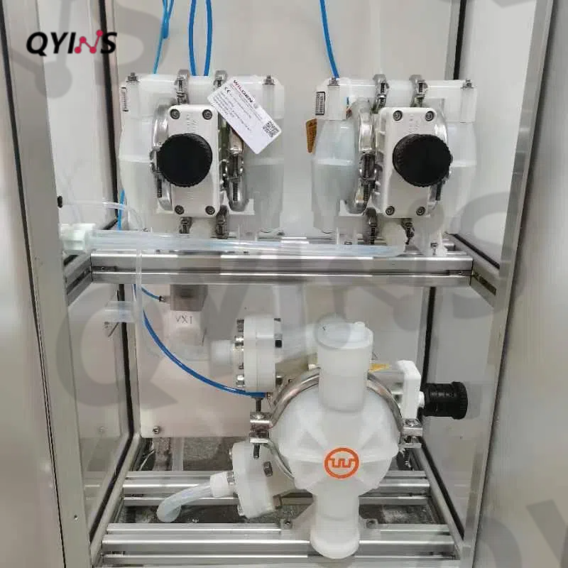 选用气动隔膜泵实现半自动进出料,提高生产效率,减少人工操作的时间和精力高。并且气动隔膜泵不使用电力作为动力源,特别适用于易燃易爆的环境中。