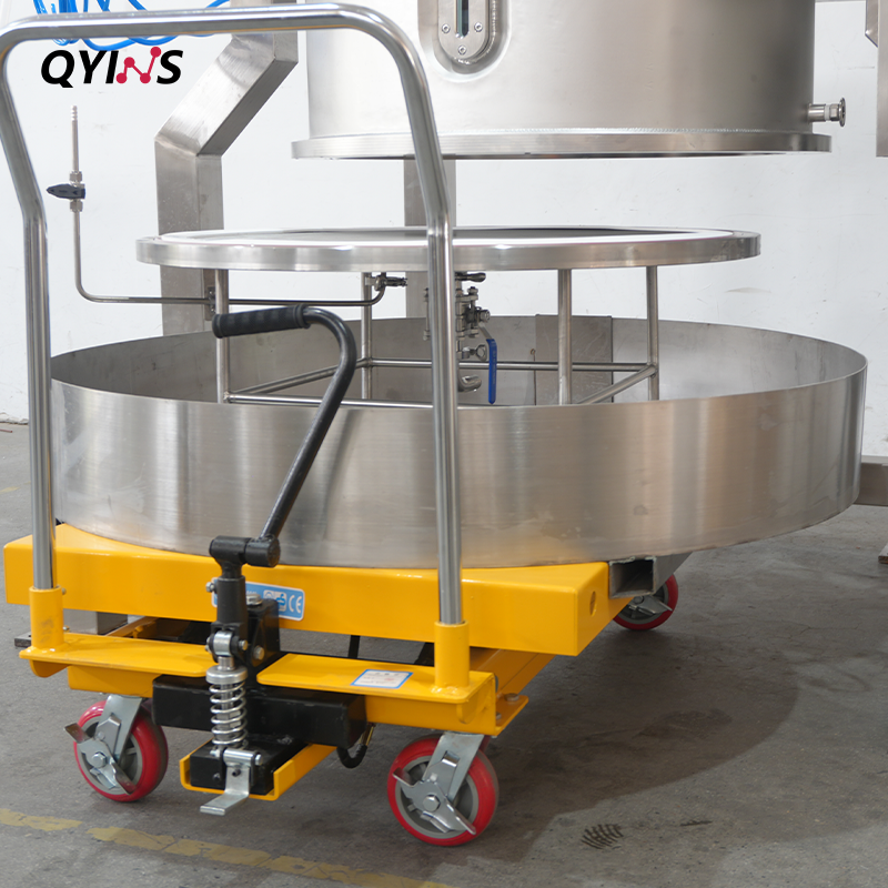 可移动升降接料小车+不锈钢托盘,辅助使用人员快速安装或拆卸过滤装置,便于收集固状粉状物料。
