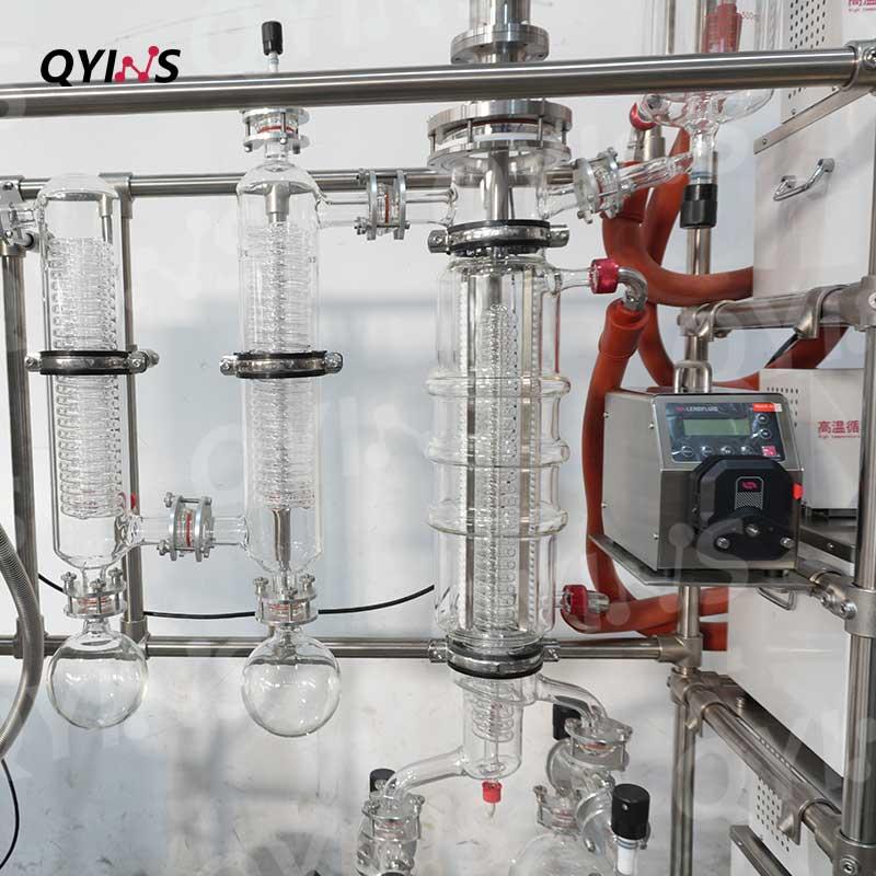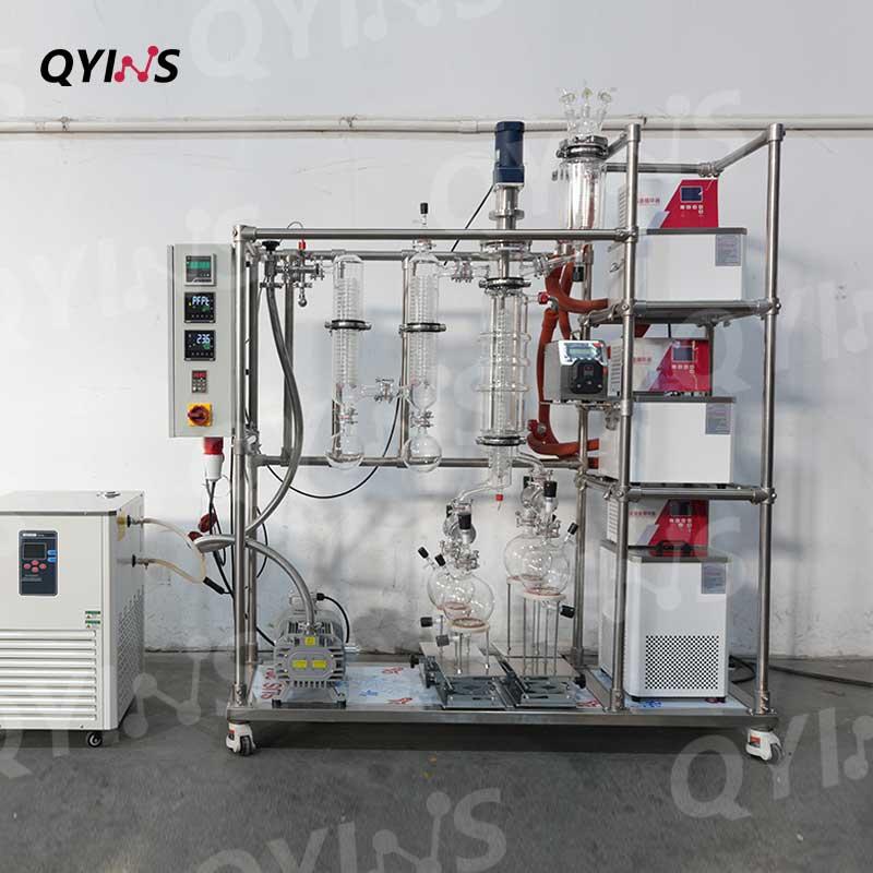 玻璃分子蒸馏设备100D,蒸发面积0.15㎡,理论处理量1-10L/h(视物料而定)。配备2L夹套进料罐、蠕动进料泵及4个收集瓶,实现连续蒸馏作业,提升效率,减少人工误差。适用于实验室及小规模生产,精准分离高沸点物质。