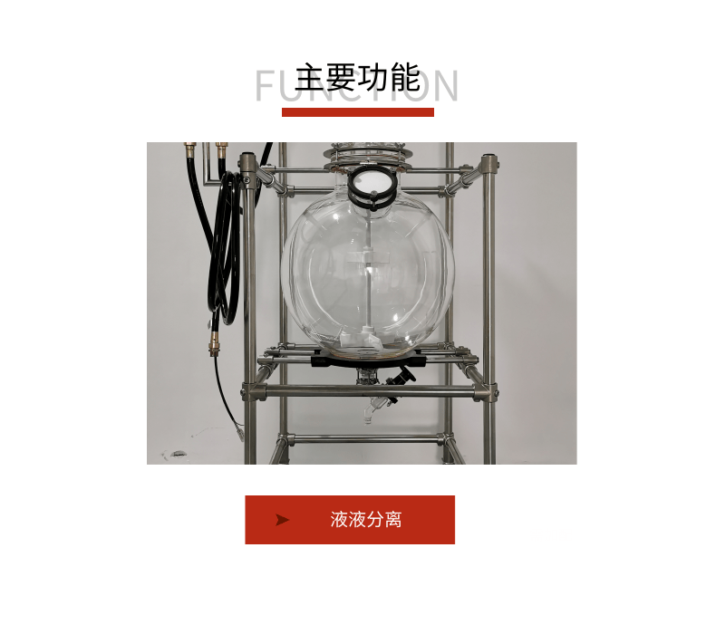 本款球型分液器,采用高硼硅玻璃球型釜体,拥有良好的物理和化学性能。广泛适用于液液分离、制药提纯、精油提纯、香精提纯、新材料分离提纯、油类分离提纯等